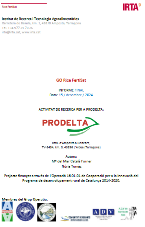 Resultats finals del projecte Rice FertiSAT